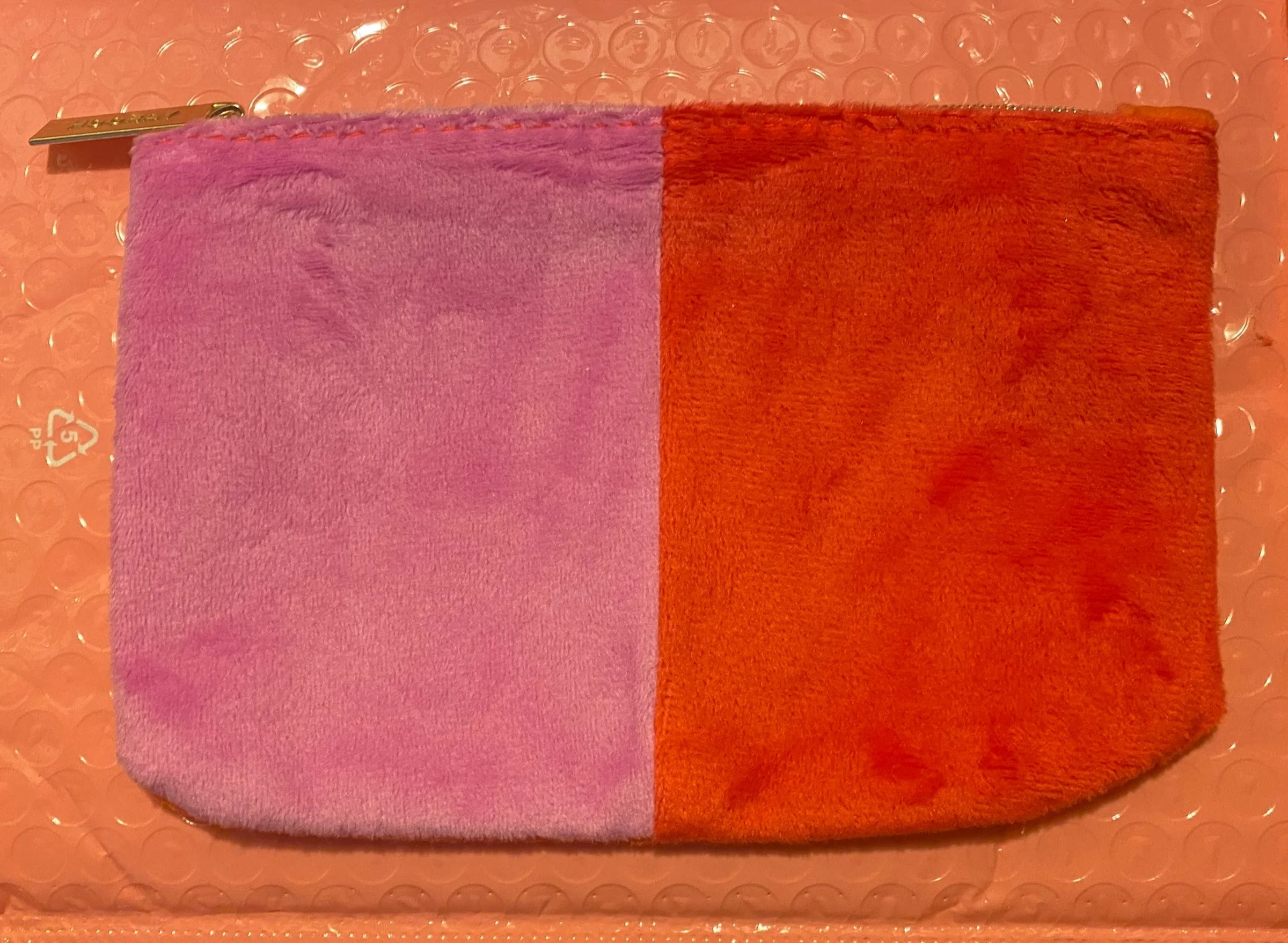This is a velvet pink and red velour bag. Which feels more like Valentine’s than Christmas. It’s cute tho.
