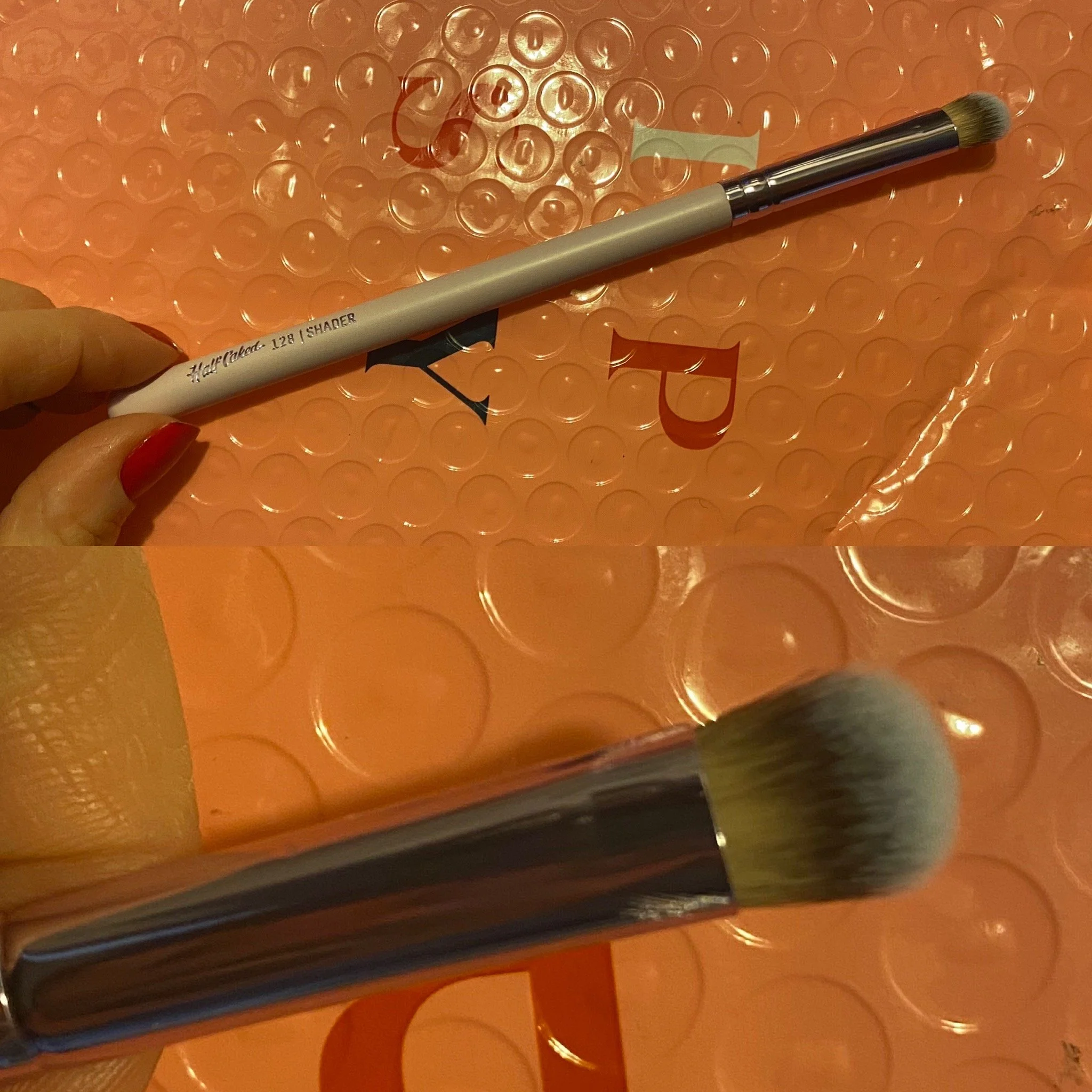 HALF CAKE 128 Shader Brush. I don’t think I’ve heard of this brush brand before. But I always appreciate good brushes. I’ve really gotten some good ones in these bags. This one is very soft and I’m able to use it as shading for my crease. I really like this one and I will be looking into buying more from this brand.