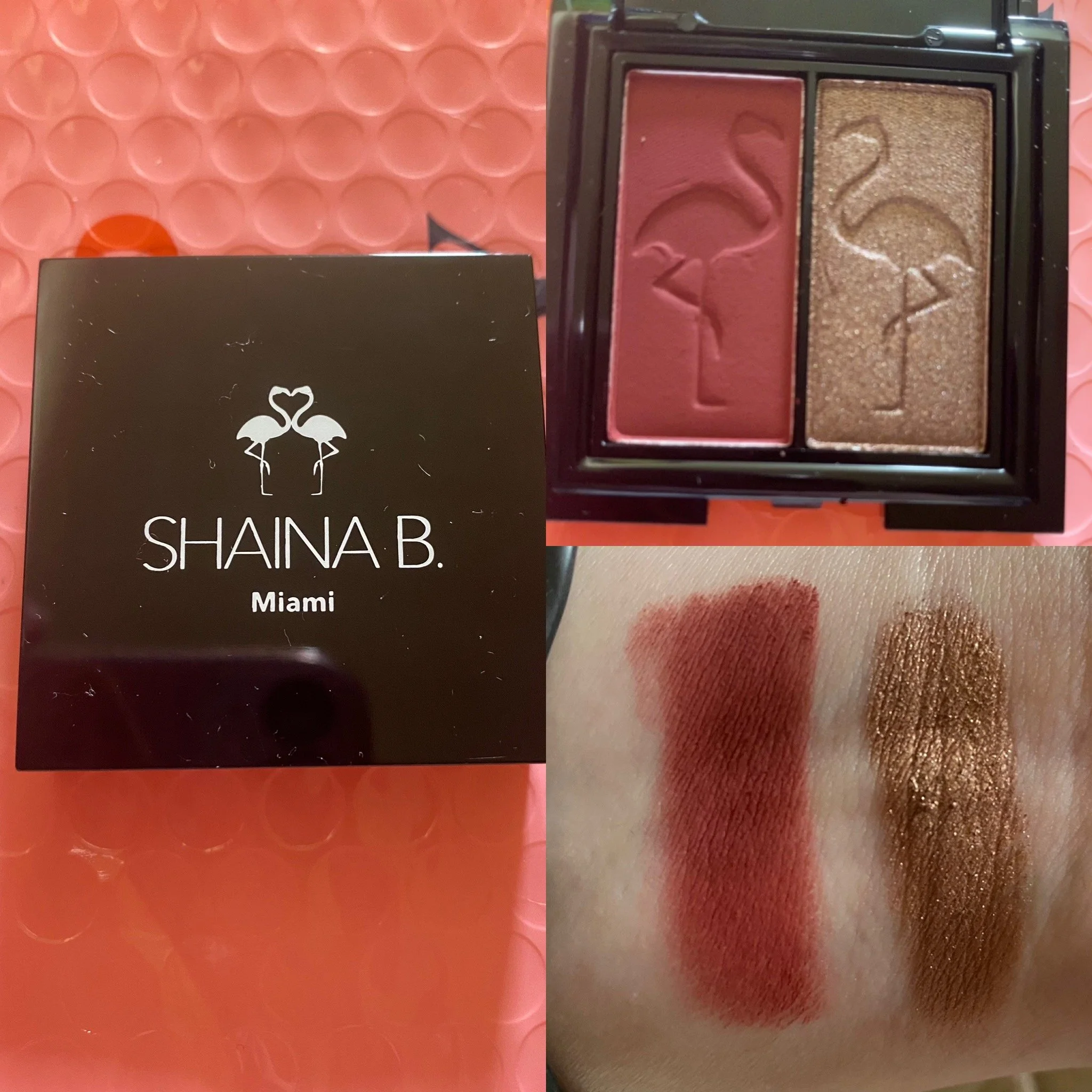Shaina B Miami B. Sultry Pressed Pigment Dup in Vino & Bae Harbor. I have tried this brand before and really liked it. I think this is the first eyeshadow duo I’ve tried. It has a matte shade in Vino which is a dark maroon and a shimmer that is a golden copper. These shades are perfect together. They are really blendable and buildable. I have been able to use them with other products with no issues and not a lot of Fall out. I really like these and would buy other shadows from this brand.