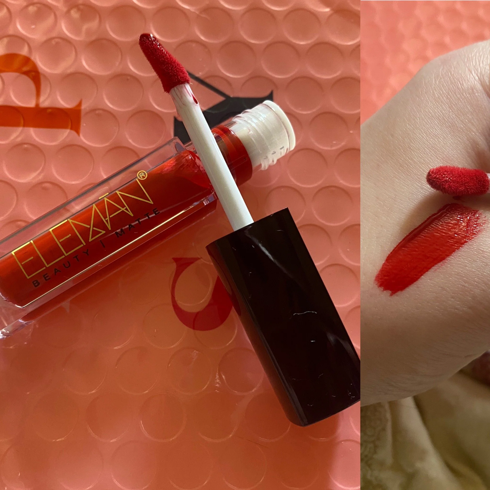 Eleman Beauty Matte Liquid Lipstick in Moscow. I have never heard of this brand before. This one goes on really easily and I was able to contour my lips. This one is a super bright red which works on my pale skin. It also lasts a long while and left a nice stain on my lips. Also, it didn’t dry them out which is always a huge plus for me. I really like this one and would buy it again.